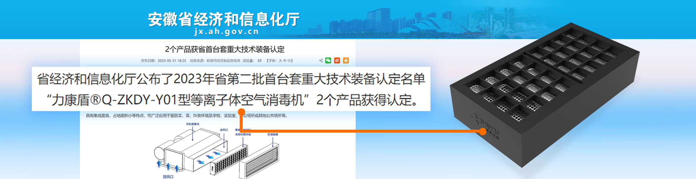 力康盾?ZKDY-G-180-P型等離子體空氣消毒機入選2024年度第三批安徽省首臺套重大技術(shù)裝備,評定等級:國內(nèi)先進(jìn)