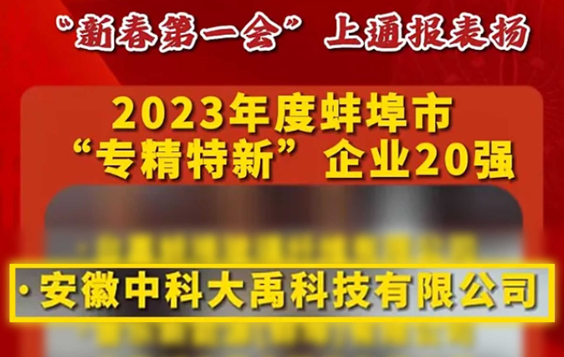 中科大禹榮登2023年度蚌埠市“專精特新”企業(yè)20強