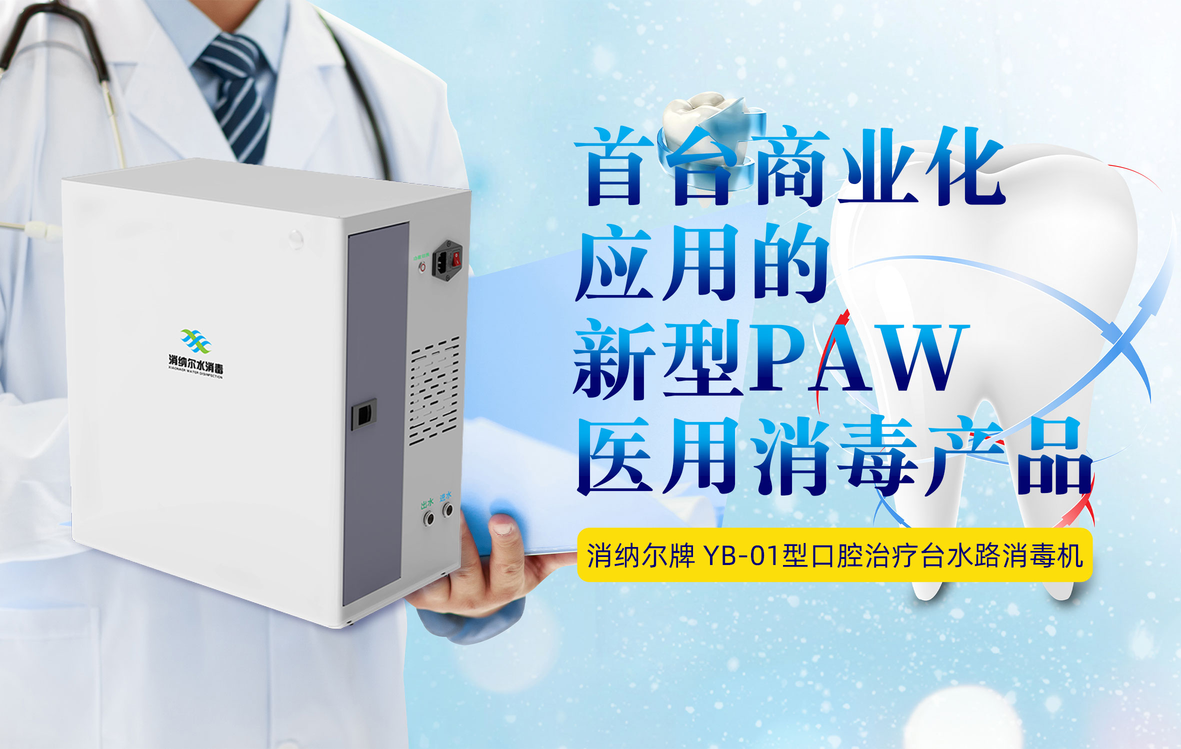 首臺商業(yè)化應(yīng)用的新型 PAW 醫(yī)用消毒產(chǎn)品,消納爾牌口腔治療臺水路消毒機